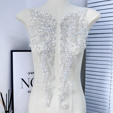Paillettes Broderie Appliques Paire Fleurs Fil Brodé Dentelle Garniture pour Robe Décoration