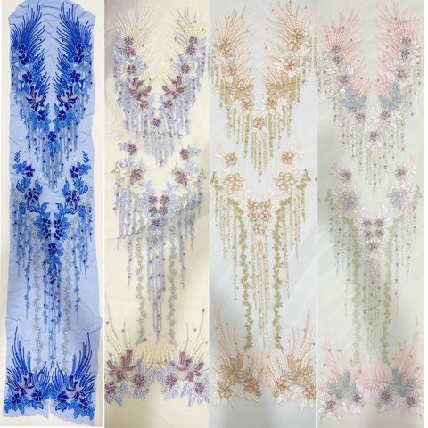 Delicate Borduurwerk Pailletten Bloem Halslijn Kraag Kant Applique Stof Voor Avondjurk