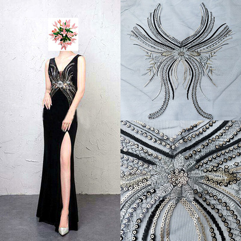 Вышивка пайетками аппликация Пара цветы нить вышитая кружевная отделка для украшения платья
